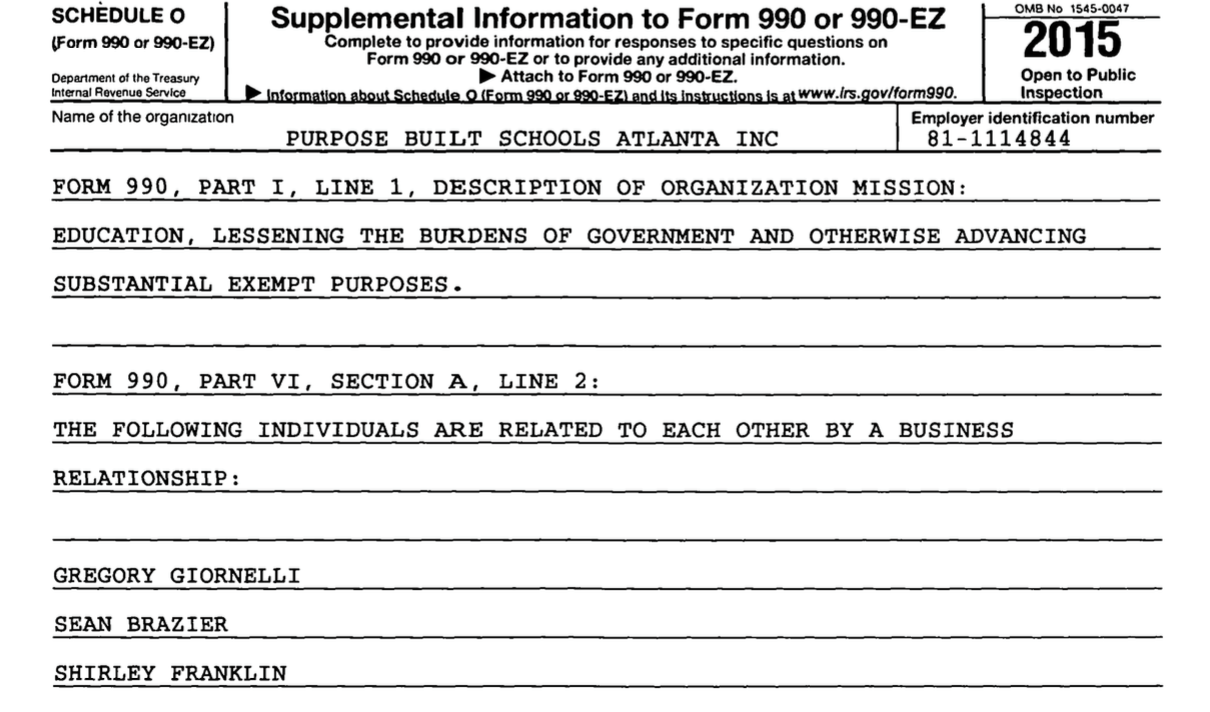 Note the comment about the three individuals with a business relationship with each other. Lillian Gianorelli is daughter of Tom Cousins, behind the C.F. Foundation, East Lake Community Foundation and (in general) this overall project.