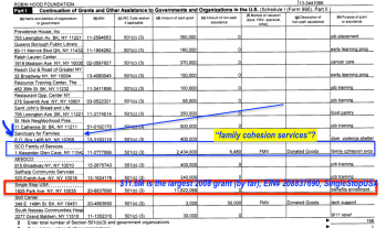 Single Stop USA FY2008 return (from “990finder”) showing a discrepancy of at MINIMUM $3M (and then only if its only grantor that year was RHF, which its paperwork indicates, it wasn’t) between what RHF claimed to donate the same year and what it acknowledged receiving. (Easily searchable at 990finder, change the URL in the year to 2008 for this earlier returns)