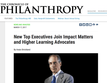 “New Top Executives Join Impact Matters and Higher Learning Advocates“ (3/17/2017 by Anais Strickland)