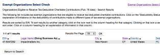 Where Is It? Step#2, Check IRS Pub. 78 data (Exempt Org. Select Check). EIN# Found! ImpactMatters, Inc.” in New Haven CT (home to WHICH major Ivy League University? Yep, Yale) is EIN# 475047252