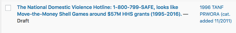 The National Domestic Violence Hotline: 1-800-799-SAFE, looks like Move-the-Money Shell Games around $57M HHS grants (1995-2016). » Screen Shot 2018-04-06 at 6.36.39 PM