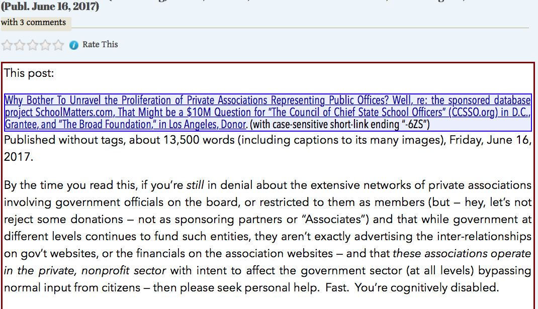 “Why Bother to Unravel…” Link provided nearby or see blog “Archives” for 6/16/2018. Bottom section of this post also summarizes key concerns in a few paragraphs, regarding social service delivery in the private sector, and the tax-exempt sector in general (from an accountability standpoint — not from a “service-delivery” standpoint).