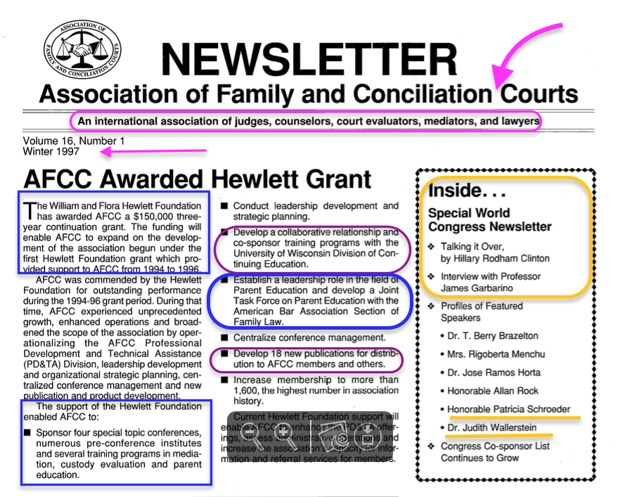 Evidence of ONGOING Censorship by Omission from “Crisis in the Courts Crowd”: From 2010 (book), 2014 (conference), an info-laden “minor omission” from 2006 (newsletter) in addition to historic “minor omission” of the TANF-based, 2006 $150M/year federal department grants stream) » AFCC Winter 1997 (Vol16#1) Newsltr (annotated, incl Garbarino, Parent Ed programs conf in Denver) ~~2018May3 Thu @3.08.47 PM 00001