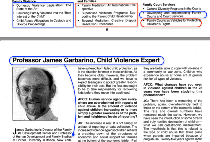 Evidence of ONGOING Censorship by Omission from “Crisis in the Courts Crowd”: From 2010 (book), 2014 (conference), an info-laden “minor omission” from 2006 (newsletter) in addition to historic “minor omission” of the TANF-based, 2006 $150M/year federal department grants stream) » AFCC Winter 1997 (Vol16#1) Newsltr (annotated, incl Garbarino, Parent Ed programs conf in Denver) ~~2018May3 Thu @3.10.54 PM 00002