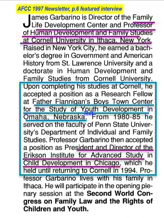 Evidence of ONGOING Censorship by Omission from “Crisis in the Courts Crowd”: From 2010 (book), 2014 (conference), an info-laden “minor omission” from 2006 (newsletter) in addition to historic “minor omission” of the TANF-based, 2006 $150M/year federal department grants stream) » AFCC Winter 1997 (Vol16#1) Newsltr (annotated, incl Garbarino, Parent Ed programs conf in Denver) ~~2018May3 Thu @3.12.07 PM 00003