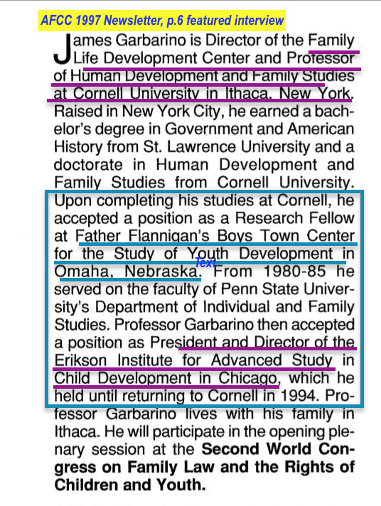 Evidence of ONGOING Censorship by Omission from “Crisis in the Courts Crowd”: From 2010 (book), 2014 (conference), an info-laden “minor omission” from 2006 (newsletter) in addition to historic “minor omission” of the TANF-based, 2006 $150M/year federal department grants stream) » AFCC Winter 1997 (Vol16#1) Newsltr (annotated, incl Garbarino, Parent Ed programs conf in Denver) ~~2018May3 Thu @3.12.07 PM 00003