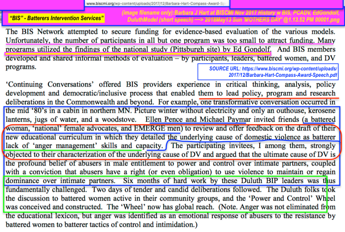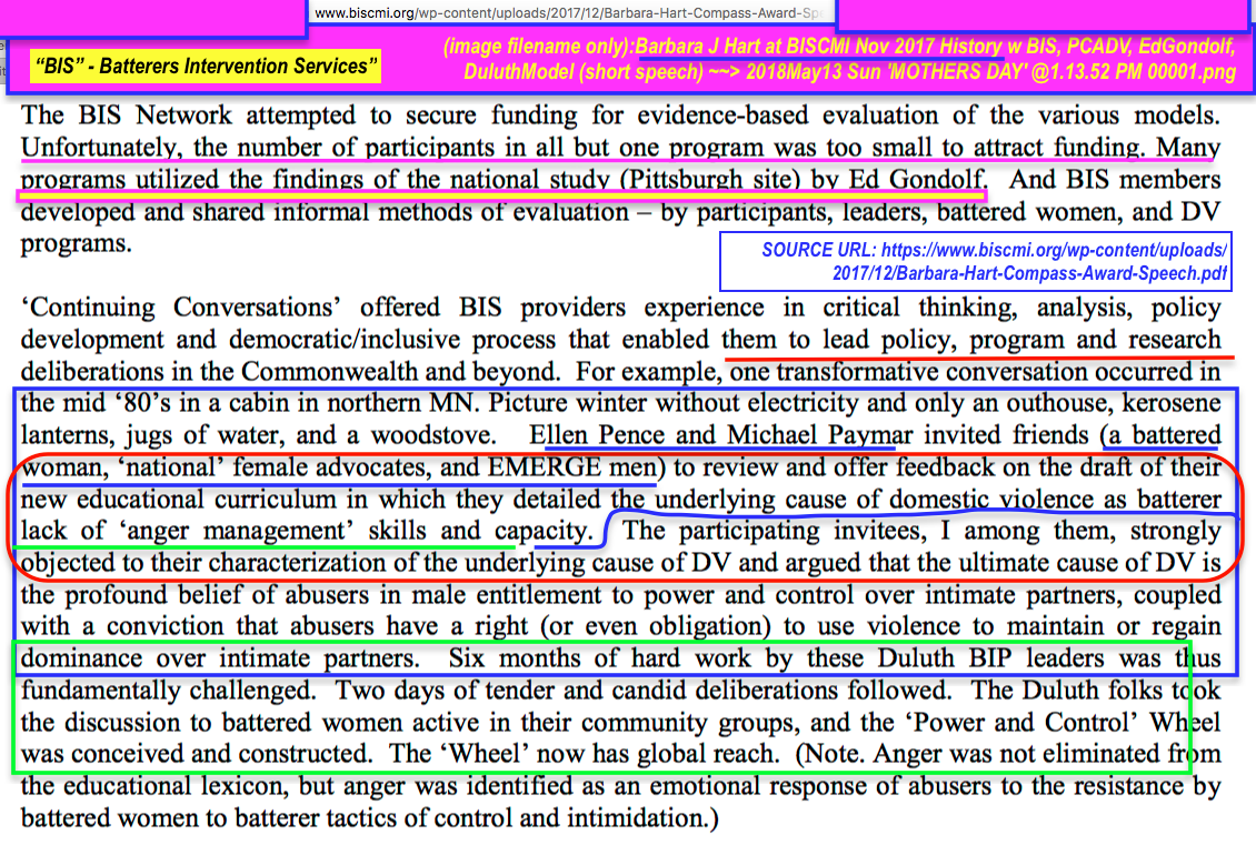 How Relevant is AFCC — and Who, UNLIKE many ‘Crisis in (or ‘Enhance/Reform’) the Courts’ groups and associated professionals who won’t, in public or on-line — Acknowledges Its Existence and Significance? (started May 7, 2018) » Barbara J Hart at BISCMI Nov 2017 History w BIS, PCADV, EdGondolf, DuluthModel (short speech) ~~> 2018May13 Sun ‘MOTHERS DAY’ @1.13.52 PM 00001