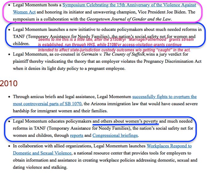 How Relevant is AFCC — and Who, UNLIKE many ‘Crisis in (or ‘Enhance/Reform’) the Courts’ groups and associated professionals who won’t, in public or on-line — Acknowledges Its Existence and Significance? (started May 7, 2018) » Legal Momentum (formerly NOW LegDefFund) By the Decades, accessed ~~2018May8 Tue @7.33.55 PM