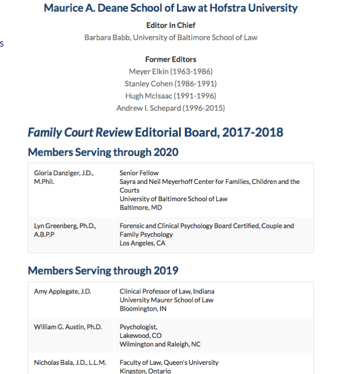 AFCC’s Family Court Review Editorial Board and Their Respective Affiliations. [Publ. May 21, 2018, with March 21, 2022, update for re-posting]. » Screen Shot 2018-05-21 at 1.46.03 PM