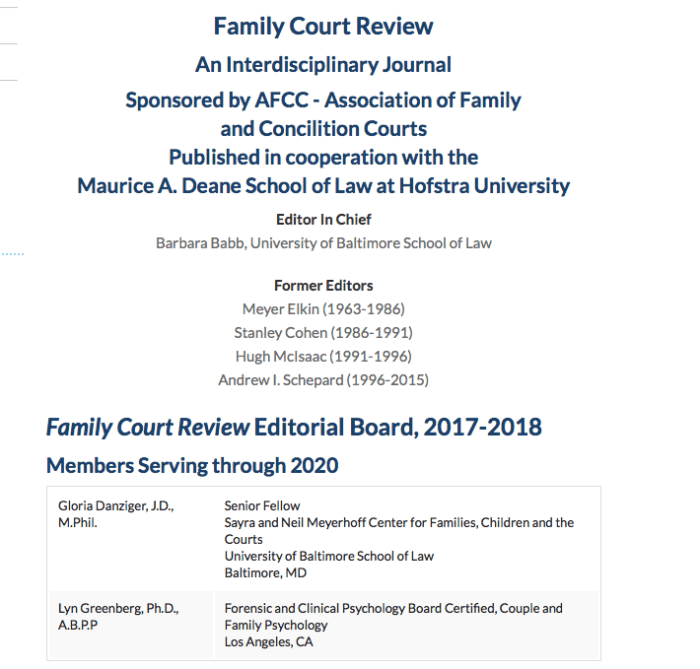 AFCC’s Family Court Review Editorial Board and Their Respective Affiliations. [Publ. May 21, 2018, with March 21, 2022, update for re-posting]. » Screen Shot 2018-05-21 at 2.22.44 PM