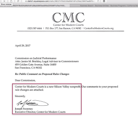 Center for Modern Courts, Inc. (Inc. Jan 2017 in California) See web address in top window frame (and related state-level filings; there are no tax returns yet) to identify the “OUR” in “Our Cause.” Incidental to main topic of this post (LGH, 6/25/2018)