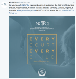 Excerpt fron NCJFCJ’s 2016-2017 Annual Report, which it was showing on Twitter recently. Note “AFCC” is acknowledged as a partner.