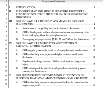 The two nonprofits I’ll look at (briefly) here are: [the] Center for Human Rights & Constitutional Law (in Los Angeles) and National Center for Youth Law (in Oakland, California), whose lawyers are Counsel for the Plaintiffs.
