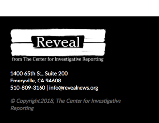 REVEAL.org, Center for Investigative Reporting (“@reveal” on Twitter) shows Emeryville, CA address (SF Bay Area).