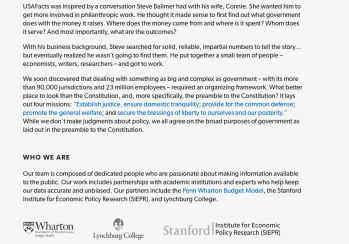 THE BALLMER Group RECENTLY CAME TO MY ATTENTION (through nonprofit lookup — and finding none where there sounded like there should be some). Looking at its website (not much on it) and for it on-line, I became aware of USAFacts.org.