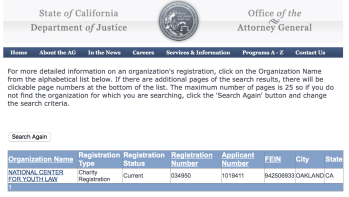 The Oakland nonprofit “National Center for Youth Law” <*> sounds familiar from my blogging. I will look up and include its filings also in this post (assuming it is a registered organization, and not a center at some other entity), but as of writing this introduction, haven’t yet.
