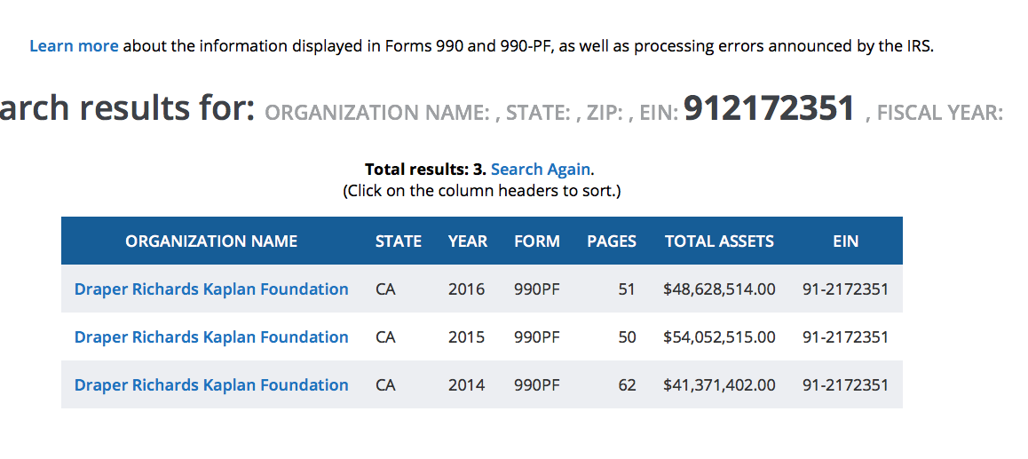Two Plaintiffs’ Counsel Nonprofits for Class Action Lawsuit (℅ Center for Investigative Reporting article) [Published July 31, 2018]. » DRK (DraperRichardsKaplan)Fndtn,The (EIN#943256415 in MenloPark,CA, incl WmH Draper III,1 Richards+1 Kaplan, 2014-2016 + 990PF 2016 (YEDec)+ some FY2013 Details ~2018July6 Fri @10.28.56