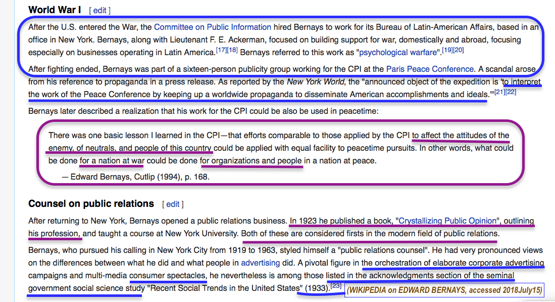 Two Plaintiffs’ Counsel Nonprofits for Class Action Lawsuit (℅ Center for Investigative Reporting article) [Published July 31, 2018]. » Edward Bernays (from his Wiki + from TheConversation’com, The Manipulatn of the American mind..birth of public relations) ~Screen Shot 2018-07-15 at 1.49.44 PM