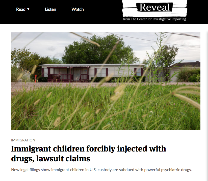 “Immigrant children forcibly injected with drugs, lawsuit claims” as reported on REVEAL.org, the nonprofit “Center for Investigative Reporting” (also searchable on this blog; I think I posted its financials in a different context)