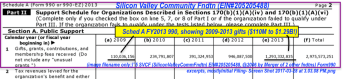 SVCF (here, for Year 2013, not 2015) Sched A. Notice the growth in contributions over just the last 5 yrs., from $110M to over $1B…