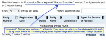 (2) a Delaware LLC registered in California as “foreign” entity and which, being an LLC does not have to show the public its tax returns (although it must file them, for sure). In the process, coming more out in the open about the branding by its owners than does the generic name “Startup: Education”