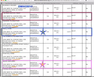 Separately, you’ll also be reminded** about the Silicon Valley Community Foundation (“SVCF”) and its about 16 “Related [also tax-exempt] Organizations” One return by one of the related organizations even showed 17.