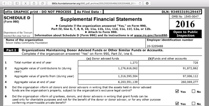 Budgets Aren’t Balance Sheets! and other Basic (USA)Facts about Billionaires’ Philanthropic Behaviors, Such as of 2014-retired Microsoft CEO Steven Ballmer + His Wife Connie [Aug. 4, 2018] » **ABCDEFG SiliconValley giant~>SVCF FY2016 (YEDec31) EIN#205205488, 2006ff ℅merger (see folders) Mostly Sched I but some Sched R + Sched L excerpts ~~2018July13 FRI @ 12.46.36 PM
