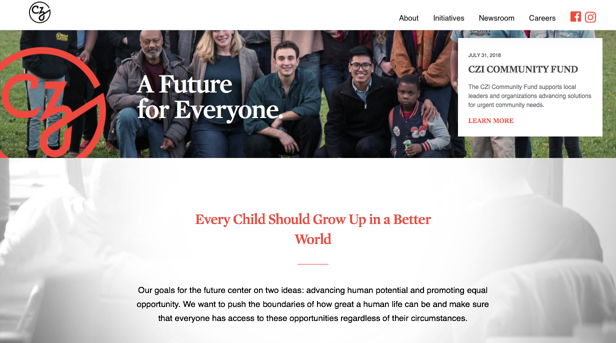 Image #1 of 4: CZI ChanZuckerberg’com home page + Community Fund page (4 images)~~Viewed 2018Aug02..
