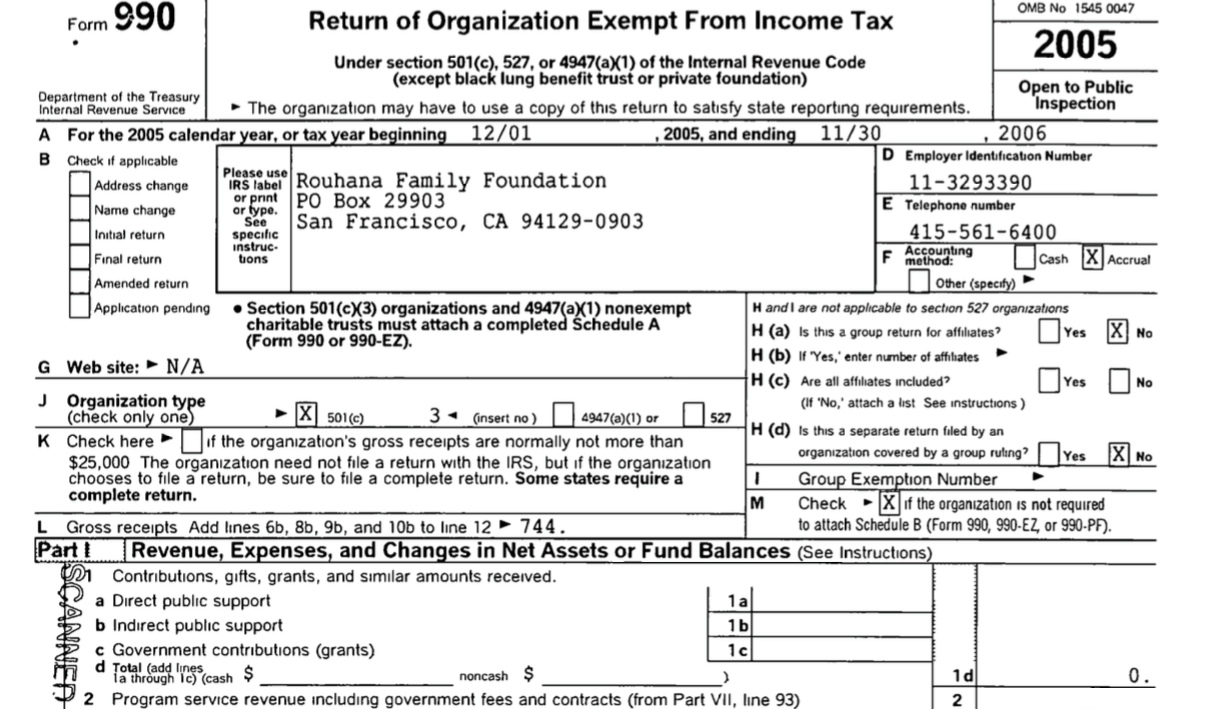 LOOK BEYOND THE LOGO! AND IF A NONPROFIT IS NAMED in the NEWS, OR EVEN HINTED AT IN THE NEWS, LOOK IT UP! » Rouhana Fam Fndtn (NYLegal Domicile) PO BOX 29903 SF (cf TidesFndtn, related) EIN#113293390, Yrs 2005, 2008 etc (WmRouhanaJr=ChickenSoupforTheSoul Entertainmt LLC + much more) 1