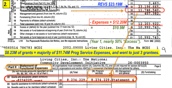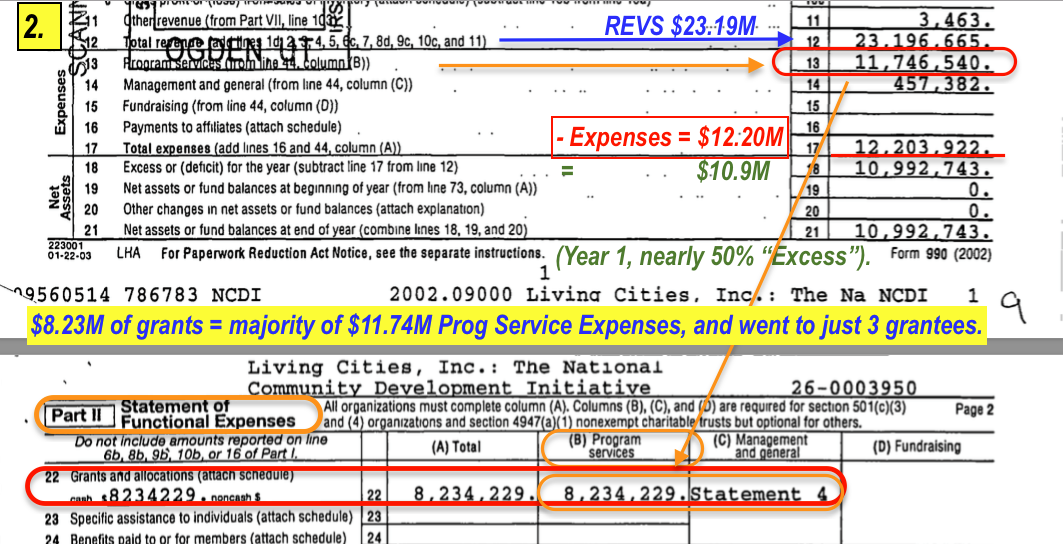 Replicable Models like ~Purpose Built Communities~ Already Have Their (public/private-sponsored) positive PR, but what are the Aftershocks of “Shaking Up Your City” and What, Really, is OUR Bedrock Bottom Line? (started March 14, 2018, edited for about a month, published Sept. 8, 2018) » LivingCities Inc the NCDI (EIN#260003950) Initial Form 990 FY2002 excerpts ~~Viewed 2018Apr9 @7.38.58 PM 00000 PM