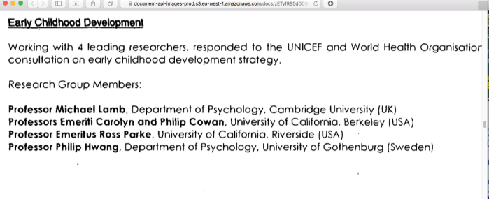 FAMILY INITIATIVE …#10445272 formed Oct 2016) working w|the Cowans (UCBerkeley, focus “Fatherhood”) + Michael Lamb (Yale grad, psychologist at UCambridge, “The Science of Fatherhd|Fatherhood Global).. (same Michael Lamb who publ. alongside R. Warshak??)