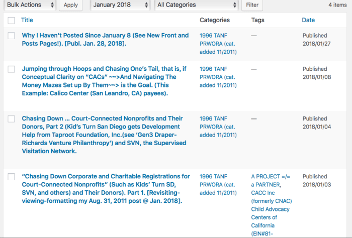 2018: A Year On This Blog | Table of Contents (Posts) | This One is “Sticky” [@ Jan. 5, 2019]. » lgh fcm 2018toc from dashboard – 4 posts in jan ~1 sshot 2019jan04 @pst 1.52.32 pm