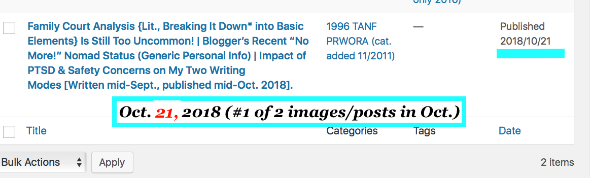 2018: A Year On This Blog | Table of Contents (Posts) | This One is “Sticky” [@ Jan. 5, 2019]. » lgh fcm 2018toc per wpadmin dashbd- oct (2 posts, oct 21, 22)~~>2 sshots 2019jan04 @pst 5.12.22 pm