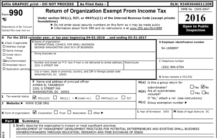 ICSB FY2016, EIN#941698897, housed at GWU School of Business in D.C. ..Link to Entire Tax Return (from FoundationCenter’org)