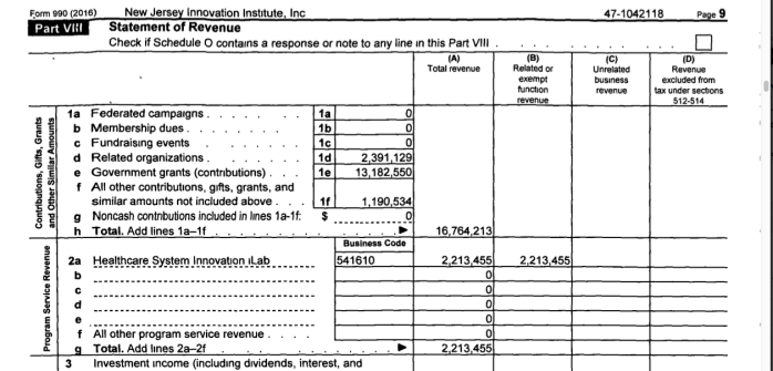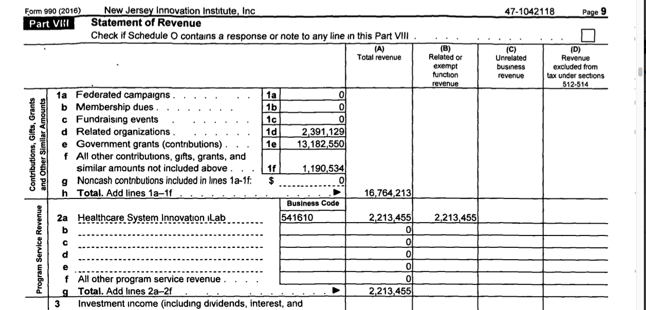 Interlocking, Dysfunctional Definitions, Cont’d: “NJII, a NJIT Company,” and (how, exactly, NJ became) “the State of Innovation.” [“Incorporated” March 17, 2019] » NJII (the 501©) FY2016 (YEJun) 990 from IRS– not signed until May 15, 2018! ~~ 4 sshots Screen Shot 2019-03-21 at 2.26.26 PM
