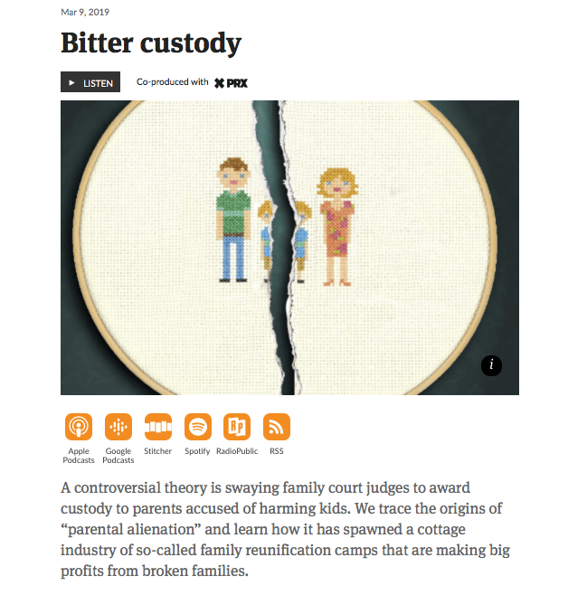 On March 9, 2019, Trey Bundy (of CIR) wrote “Bitter Custody” about PAS theory and reunification camps