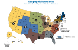 are large states; California in the huge Ninth Circuit (see map), and Texas in the geographically large (though only involving Texas, Louisiana and Mississippi) the Fifth District (out of 12 + the Federal = 13 total). (Brief “US Courts.gov About“)