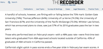 May 17, 2019, The Recorder, “Nearly 7 in 10 flunked California’s February 2019 Bar Exam”