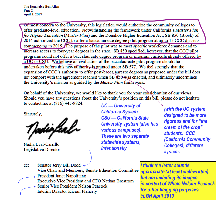 2 images for post (started) 4/29/2017, The Arkansas Connection (Mr. Peacock) to H.Con.Res.7s lobbyist nonprofit NACPN. General Background. This is a Apr. 3, 2017 ltr from his UC Officeexpressing concern about a bill.