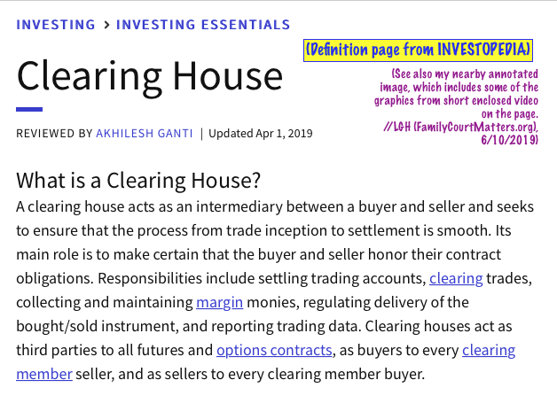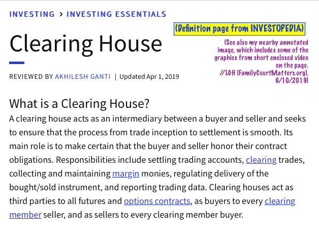 For my post ‘Mix-n-Match, Mis-understood Terms’ near publication June 10, 2019, INVESTOPEDIA, Image #3 of 5, “Clearinghouse” definition sought ℅ Google Search (top results, See my annotations!