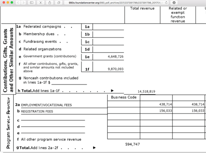 NGA CBC Form 990 FY2016 (YEJune2017) Pt VIII Lines 1+2 from Foundation Center, as viewed ~~Screen Shot 2019-06-15 (9-digit EIN# visible in URL at the top)