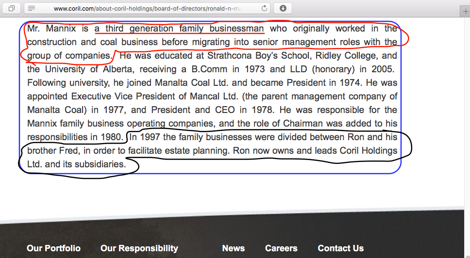 Coril Holdings Ltd (Canadian), Mannix brothers Ron & Fred, Norlien Foundation (became Palix only in 2015) and Alberta Wellness Initiative.