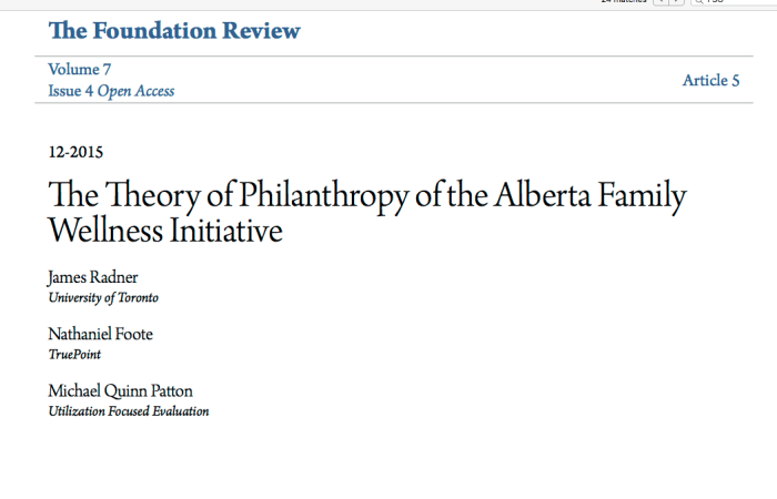 Foundation Review Dec. 2015 (AWI article) Title. Incidentally, “initiatives” don’t have theories — people do: here, those running Palix (formerly Norlien) Foundation.