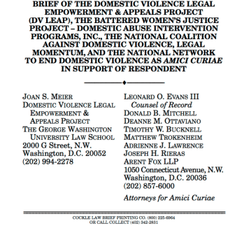 This one (Appendix C) quotes, besides DVLEAP, “BWJP (of DAIP in MN is acknowledged), NNEDV, NCADV (a barely-there Denver entity claiming legal domicile in Colorado on its tax returns, when its legal domicile is in fact on the West Coast (OR or WA, forget which state), and which also does not report on the massive HHS funding of fatherhood through welfare reform. Nor (I’ve looked often) does another Amicus Curiae reference, “Legal Momentum.”