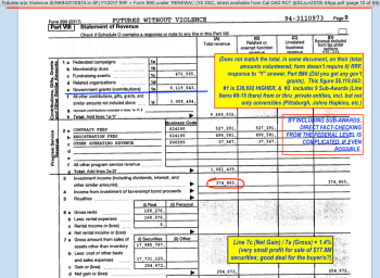- Futures w|o Violence (EIN#943110973 in SF) FY2017 RRF + Form 990 under ‘RENEWAL’ (YE DEC, latest available from Cal OAG RCT @23Jun2019) RRF explanation page unusually, shows sub-awards)