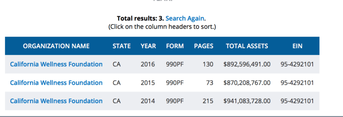 “By Now We Should Know!” (Impromptu Re-cap of Key Players addressing [how to handle] Domestic Violence especially as it impacts Family Courts) (Apr 28 ~> June 22, 2019). » Calif WellnessFndtn FY2016 (latest now, YE Dec) 892M Assets, 29M Grantees, EIN#954292101 (cf First 5, AlamedaCountyFathersCorps) cf my current draft post (ByNowWeShouldKnow) ~~10++ SShots 2019May30 Thu PST @ 1.25.49 PM 1
