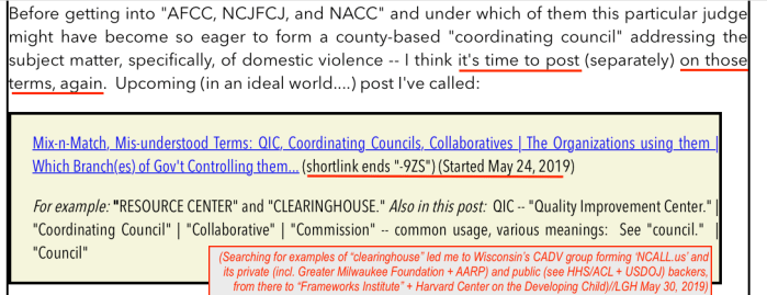“By Now We Should Know!” (Impromptu Re-cap of Key Players addressing [how to handle] Domestic Violence especially as it impacts Family Courts) (Apr 28 ~> June 22, 2019). » LGH|FCM Post ‘Women Judges Still Form Funky-Filing Nonprofits’ (2019May25?, ending -9YW)Excerpts (in Edit Mode), incl spin-off terminology post ~~Screen Shot 2019-05-30 at 8.03.07 AM 1