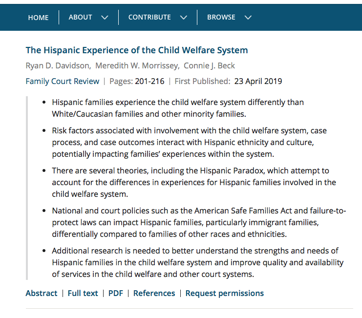 https://onlinelibrary.wiley.com/journal/17441617 (Public-access contents pages for April, 2019 Family Court Review, on Wiley) in 5 images)