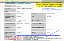 (Recent example: It took me a while based on this website blaring an INactive “dba” as though it was a current one, to locate WHICH of the MANY “Prizker” foundations, not one of which had the name provided, was the “J.B. and M.K. Pritzker Family Foundation” (<~referenced here, no link provided) involved in “Priztker Children’s Initiative.” (<~referenced again, by that exact name, in the “About Us” under the website PritzkerChildrensInitiative.org). JB Pritzker being the current Governor of the State of Illinois and characterized as the wealthiest person in US Congress, I felt it worth some follow-up.