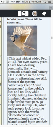 - Sidebar TEXT Widget “Let’s Get Honest: There’s Still No Excuse for Abuse, But…” (see nearby image of widget).